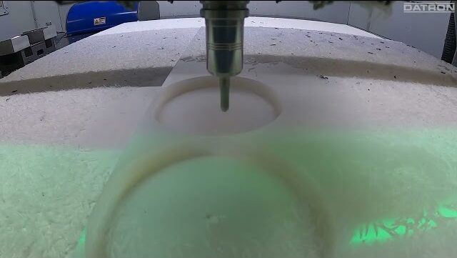 Plastics are not easy to work with. Too much heat softens the material, and that impacts the cut quality. So, you need fast feed rates and a high RPM spindle to efficiently mill plastics. DATRONs reach spindle speeds up to 60,000 RPM. The hot chips must be removed from the cutting tool path quickly, so the cooling system has to be efficient. DATRONs use a minimum-quantity lubricant system with pressurized air that blasts chips out of the way.